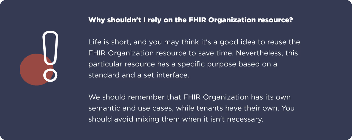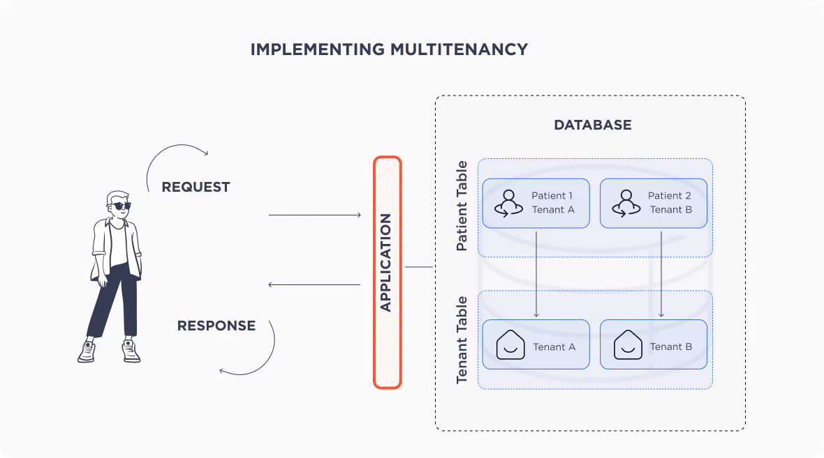 Multitenancy is a matter of internal architectural decisions. FHIR exposes FHIR_BASE_URL to make the functionality available to others. Every client of yours should get their own FHIR_BASE_URL. We will explain this in more detail later on.