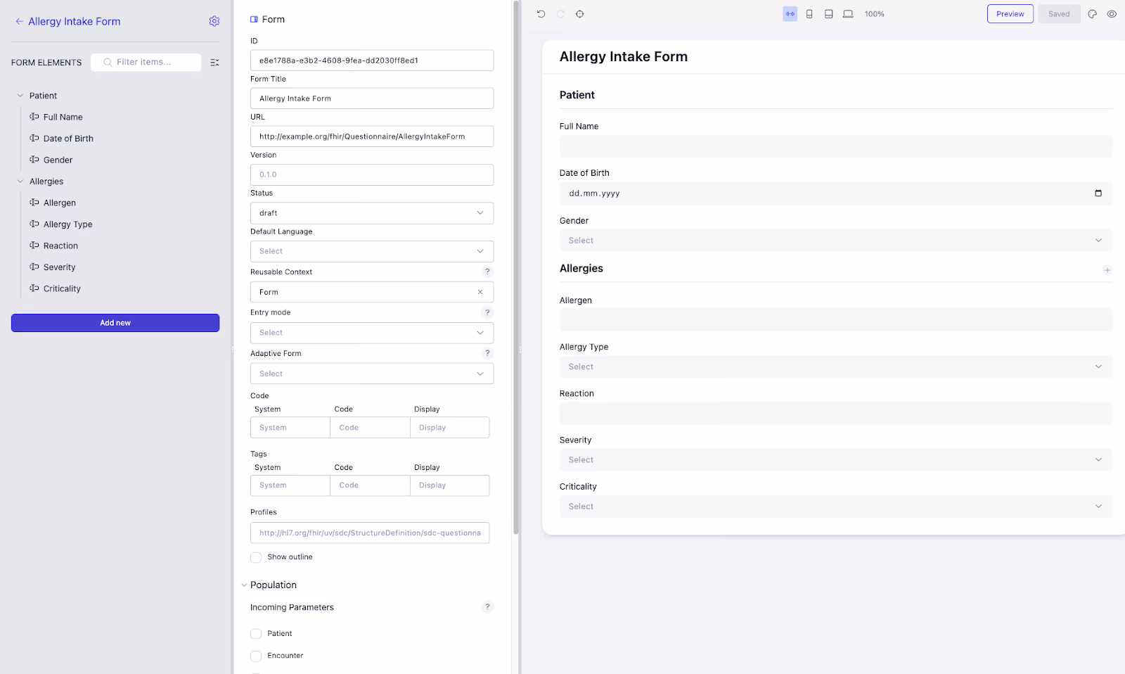 Best for: Structured forms designed to mirror FHIR profiles or core resources.